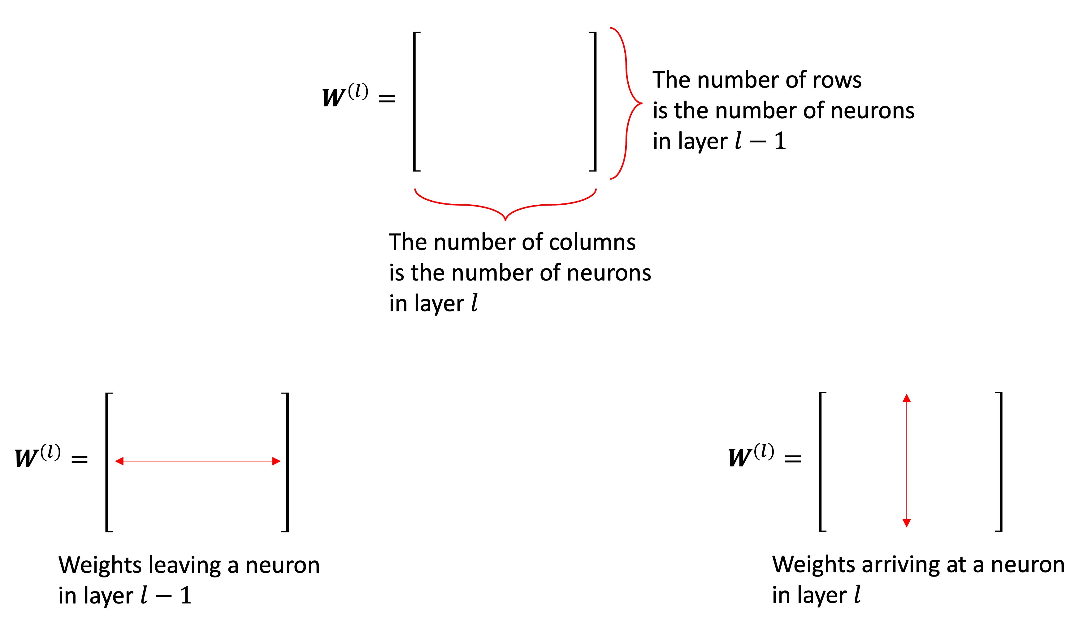 Remember, the weights connect every neuron from the previous layer to every neuron in the current layer.